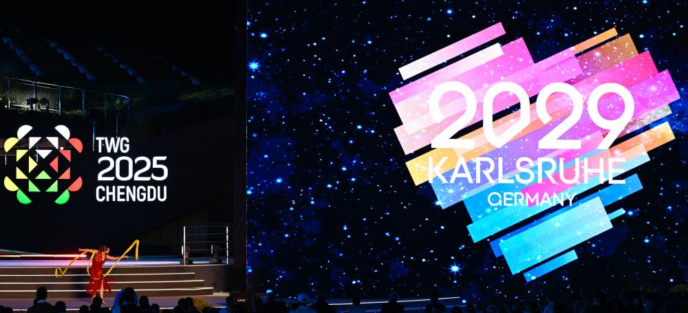 成都世運(yùn)會(huì)組委會(huì)主席施小琳、國際世界運(yùn)動(dòng)會(huì)協(xié)會(huì)主席何塞·佩魯雷納先后致辭,向?yàn)楸緦檬肋\(yùn)會(huì)圓滿成功作出貢獻(xiàn)的所有人員表示感謝。下屆世運(yùn)會(huì)舉辦城市德國卡爾斯魯厄市市長(zhǎng)弗蘭克·門特魯普致辭,熱情邀請(qǐng)全球賓客四年后相聚卡爾斯魯厄。