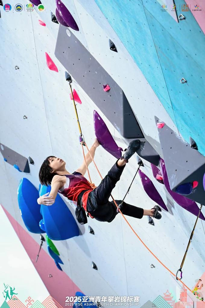 陳宣臻本屆比賽已收獲了U19組女子攀石銀牌。當(dāng)天的難度決賽中她倒數(shù)第二個(gè)出場(chǎng),最終爬出了32+的成績(jī),僅領(lǐng)先日本選手山真奈實(shí)一個(gè)出手奪冠。