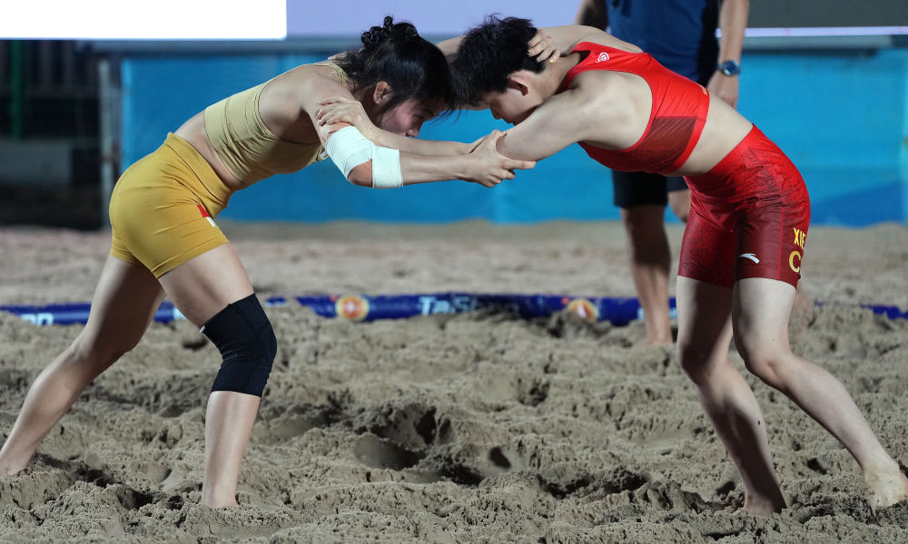“感覺參賽選手的技戰(zhàn)術(shù)準(zhǔn)備和體能儲(chǔ)備都很充分,這激發(fā)我要拿出更好的狀態(tài)。”龍佳說,她和不少隊(duì)友都是首次參加沙灘摔跤比賽,十分享受比賽過程,期待在決賽中取得好成績(jī)?!斑@項(xiàng)比賽規(guī)則更加簡(jiǎn)單,適合朋友間三三兩兩在沙灘上角逐?!彼€希望通過沙灘摔跤比賽讓更多人接觸并喜愛摔跤運(yùn)動(dòng)。