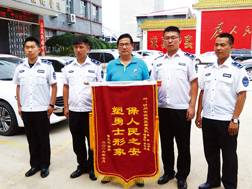 “謝謝你們的幫助,讓我被搶的財(cái)物失而復(fù)得,謝謝、謝謝……”7月13日下午,家住我市城區(qū)學(xué)府街的謝先生連聲感謝,將一面寫有“保人民之安塑勇士形象”字樣的錦旗送到了市城建支隊(duì)協(xié)管大隊(duì)城管隊(duì)員張志、楊勇江、劉宇鑫、李仁杰手中,表達(dá)他對(duì)市城建支隊(duì)城管隊(duì)員們見義勇為、熱心為民的感激之情。
