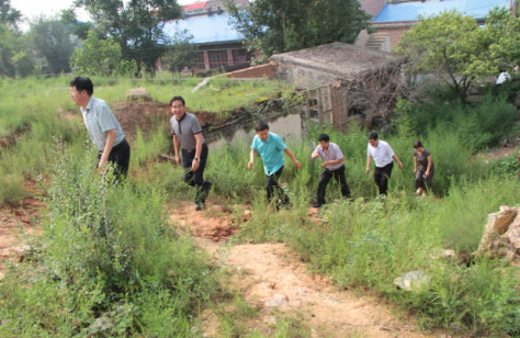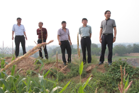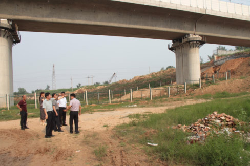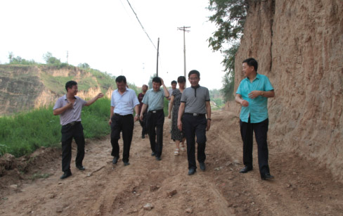 7月29日烈日炎炎,忻州氣溫高達(dá)30多度,下午16時(shí)許,忻府區(qū)區(qū)長趙志偉,副區(qū)長寧康平,忻府區(qū)國土資源局局長白蕾,解原鄉(xiāng)黨委書記丁國倉,鄉(xiāng)長王萬榮和相關(guān)部門負(fù)責(zé)人,帶著忻州市委、市政府,忻府區(qū)委、區(qū)政府對(duì)東社村村民的關(guān)懷,趕赴解原鄉(xiāng)東社村實(shí)地了解情況。區(qū)長趙志偉一行人驅(qū)車直奔現(xiàn)場,徒步來到村東南角高鐵架空橋下,認(rèn)真察看高鐵架空橋下積水形成灘涂地段和防洪渠現(xiàn)狀后,漫步爬坡而上,走到村東南土方堆放處神臺(tái)溝(地名)。親自爬上高約7、8米的土堆,沿土堆一直走到源頭察看了積水情況,經(jīng)過對(duì)現(xiàn)場地形以及土堆源頭積水情況的細(xì)致調(diào)研,一行人汗流夾背地返回村口,連口水也來不急喝就開始認(rèn)真地分析問題。
