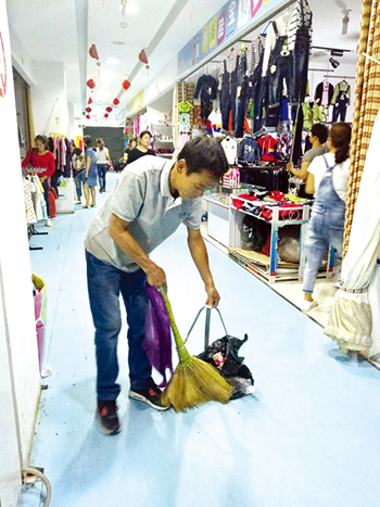 整個云河商場只有一層,共60多家商戶,衛(wèi)生清潔一天3次,工作量雖然不是很大,卻也不輕松。記者見到老馬時,他正在做商場關(guān)門前的最后一次清掃。不時有商戶喊老馬過去收紙箱和塑料袋,老馬加快了手里的動作。“商場是公共場所,管理也挺嚴格的,我得隨時注意看哪里有了垃圾,或是公共設(shè)施出了問題,要不人來人往怕出事。干凈整潔的環(huán)境代表著商場的形象,也能讓顧客購物時有個好心情,這也是我工作的價值吧?!崩像R坦言,有的人衛(wèi)生習(xí)慣特別不好。商場里童裝生意最為火爆,有個別帶孩子的家長直接讓孩子隨地大小便,不僅弄臟了環(huán)境也作了不良示范。老馬希望通過創(chuàng)衛(wèi),大家愛護環(huán)境衛(wèi)生的意識得到提高,這樣他也可以輕松點了。(王菲)