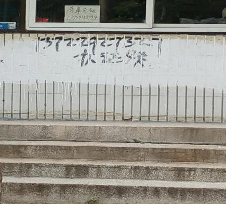 忻州市委黨校巷圣元奶粉對(duì)面墻上的違法辦證廣告(劉曉英 攝)