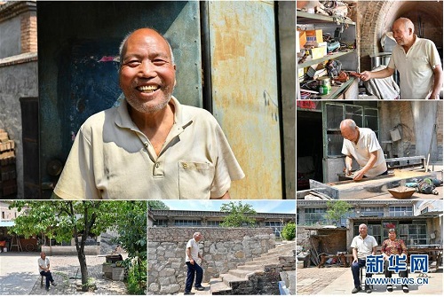 韓忠岐,男,1949年出生,山西省長(zhǎng)治市潞城區(qū)垂陽(yáng)村人,1976年起擔(dān)任村干部。從小熱愛學(xué)習(xí)的韓忠岐對(duì)鄉(xiāng)村發(fā)展有自己獨(dú)特的想法,他鼓勵(lì)村民們學(xué)習(xí)技能,在農(nóng)閑時(shí)“組團(tuán)”外出打工,農(nóng)忙時(shí)鄰里互幫互助,曾經(jīng)貧窮的垂陽(yáng)村在他的帶領(lǐng)下慢慢富裕起來(lái)。退休后,閑不下來(lái)的韓忠岐自學(xué)打鐵、電焊技能,現(xiàn)在成了鄉(xiāng)里小有名氣的鐵匠,經(jīng)常為貧困戶開展技術(shù)培訓(xùn)。 左上:韓忠岐肖像;右上:韓忠岐在挑選工具;右中:韓忠岐在制作一個(gè)鐵皮抽屜;右下:韓忠岐和老伴坐在院子里;下中:韓忠岐去鄰居家串門;下左:韓忠岐在院子里乘涼(拼版照片,6月18日攝)。 地處晉東南的山西省長(zhǎng)治市,位于由太行山、太岳山環(huán)繞而成的上黨盆地中。在群山中、崖壁上,許多村莊自然條件惡劣,基礎(chǔ)設(shè)施落后,脫貧致富是大山深處人們的迫切心愿。 近年來(lái),一場(chǎng)場(chǎng)脫貧攻堅(jiān)戰(zhàn),在一個(gè)個(gè)深山村打響。政府全力探索脫貧路徑的同時(shí),山區(qū)百姓因地制宜,靠自己的雙手和智慧走上致富路,交出了一份扎實(shí)的脫貧答卷。 記者在太行山、太岳山一路尋訪,記錄下多位70歲老人的生活。這些共和國(guó)的同齡人,親歷了山鄉(xiāng)的巨變,見證著長(zhǎng)治山區(qū)脫貧攻堅(jiān)偉大工程的一步步推進(jìn)。 新華社記者 曹陽(yáng) 攝