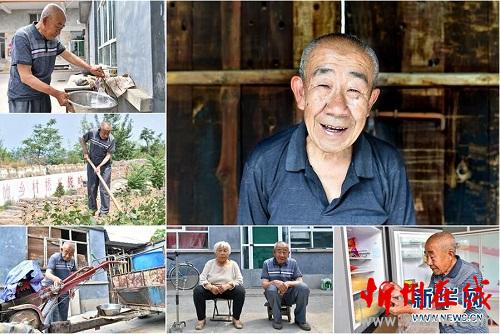 郭中其,男,1949年出生,山西省長(zhǎng)治市潞城區(qū)常村人,全家6口人靠種地為生,因家人重病而造成生活困難。被納入建檔立卡貧困戶后,郭中其家人治病的花銷顯著減少,子女參加了免費(fèi)技能培訓(xùn)并找到了工作,家里的生活條件得到了改善,2017年全家脫了貧。 右上:郭中其肖像;左上:郭中其在院子里接水;左中:郭中其在田地里鋤草;左下:郭中其在擦拭拖拉機(jī);下中:郭中其和老伴坐在院子里;下右:郭中其從冰箱里拿出西紅柿(拼版照片,6月12日攝)。 地處晉東南的山西省長(zhǎng)治市,位于由太行山、太岳山環(huán)繞而成的上黨盆地中。在群山中、崖壁上,許多村莊自然條件惡劣,基礎(chǔ)設(shè)施落后,脫貧致富是大山深處人們的迫切心愿。 近年來(lái),一場(chǎng)場(chǎng)脫貧攻堅(jiān)戰(zhàn),在一個(gè)個(gè)深山村打響。政府全力探索脫貧路徑的同時(shí),山區(qū)百姓因地制宜,靠自己的雙手和智慧走上致富路,交出了一份扎實(shí)的脫貧答卷。 記者在太行山、太岳山一路尋訪,記錄下多位70歲老人的生活。這些共和國(guó)的同齡人,親歷了山鄉(xiāng)的巨變,見(jiàn)證著長(zhǎng)治山區(qū)脫貧攻堅(jiān)偉大工程的一步步推進(jìn)。 新華社記者 曹陽(yáng) 攝