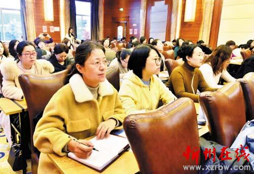 本報(bào)訊為落實(shí)推進(jìn)“家家幸福安康工程”,幫助家長(zhǎng)系統(tǒng)學(xué)習(xí)家庭教育知識(shí),12月18日,由忻州市婦聯(lián)舉辦的家庭教育培訓(xùn)班隆重開(kāi)班。市縣兩級(jí)婦聯(lián)工作人員、機(jī)關(guān)及企事業(yè)單位婦委會(huì)工作人員等200余人參加培訓(xùn)。