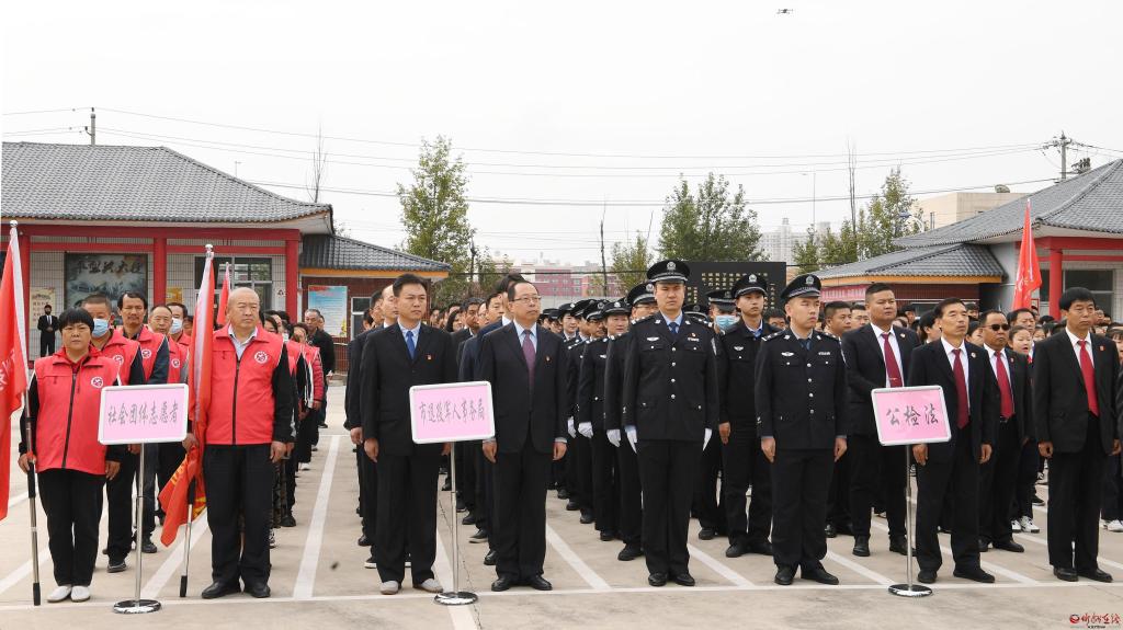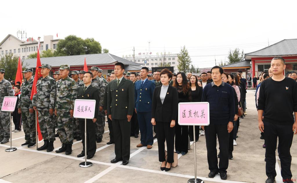 廣場上,部隊官兵、武警官兵、公安民警、學校師生、機關干部、社會團體和志愿者代表等社會各界人士整齊列隊、靜靜肅立。市四大班子領導、忻州軍分區(qū)領導、忻府區(qū)四大班子領導及人民團體和各界社會群眾代表敬獻的花籃依次擺放在紀念碑基座前廣場上。