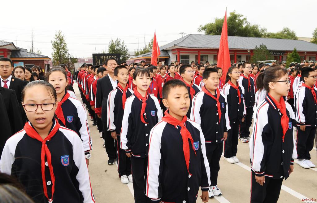 少先隊員合唱《我們是共產(chǎn)主義接班人》。劉紀森 攝