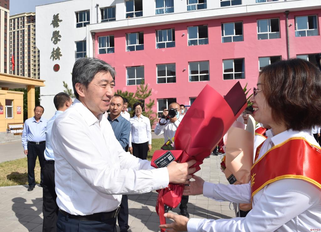 每到一處,朱曉東都與教師們深入交流,了解學(xué)校建設(shè)發(fā)展情況,關(guān)切詢問他們的工作生活情況,感謝他們?yōu)槲沂薪逃聵I(yè)發(fā)展作出的貢獻,并為優(yōu)秀教師代表送上了鮮花,祝他們節(jié)日快樂。朱曉東指出,新一屆省委、省政府作出構(gòu)建“一群兩區(qū)三圈”城鄉(xiāng)區(qū)域發(fā)展新格局的重大戰(zhàn)略部署,明確提出“強勢打造太忻一體化經(jīng)濟區(qū)北引擎,引領(lǐng)帶動忻州與太原、雄安新區(qū)相向發(fā)展,打造我省融入京津冀和服務(wù)雄安新區(qū)的重要走廊”,賦予忻州“建設(shè)開放發(fā)展前沿城市”的戰(zhàn)略定位,忻州發(fā)展迎來了前所未有、千載難逢的重大機遇。不論是太忻一體化經(jīng)濟區(qū)建設(shè),還是建設(shè)開放發(fā)展前沿城市,都離不開人才的支撐。希望廣大教育工作者身在學(xué)校、心系全局,秉持“負(fù)責(zé)任、動腦筋、講良心”的工作要求,潛心教學(xué)鉆研、立德樹人,以更加飽滿的熱情投身教育事業(yè),為忻州經(jīng)濟社會發(fā)展培養(yǎng)更多的優(yōu)秀人才。