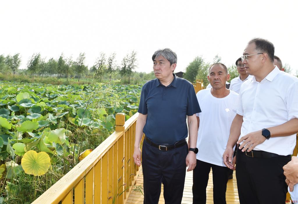 在吉福寺農(nóng)場,朱曉東深入田間地頭實(shí)地查看農(nóng)作物長勢,與農(nóng)場負(fù)責(zé)人面對面交流,仔細(xì)詢問農(nóng)產(chǎn)品品種、畝產(chǎn)量、耕種模式、農(nóng)旅融合發(fā)展等情況。他指出,要加快轉(zhuǎn)變發(fā)展觀念,立足農(nóng)場資源稟賦,找準(zhǔn)農(nóng)旅融合發(fā)展的切入點(diǎn),把旅游產(chǎn)業(yè)和農(nóng)業(yè)產(chǎn)業(yè)有機(jī)結(jié)合,高標(biāo)準(zhǔn)高品質(zhì)打造有鄉(xiāng)村氣息的參與式、觀光式和體驗(yàn)式旅游產(chǎn)品。要充分挖掘鹽堿地綜合利用潛力,因地制宜抓好技術(shù)推廣、品種選育等工作,大力探索鹽堿地治理改良的有效方法,深度做好鹽堿地特色農(nóng)業(yè)大文章。