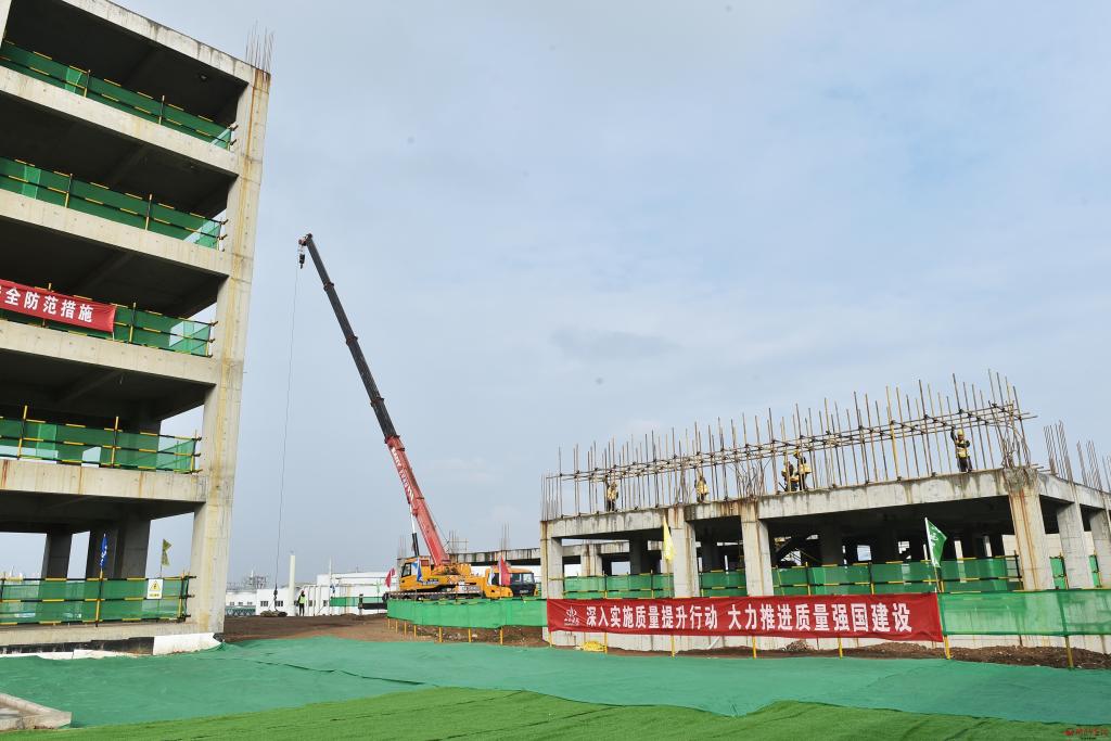 在電子信息裝備產(chǎn)業(yè)園觀摩檢查標(biāo)準(zhǔn)化廠房項目(二期)建設(shè)情況。馮曉磊