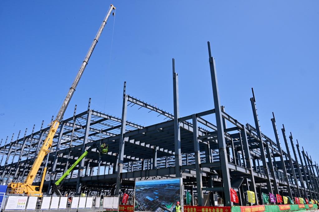 宏厚裝配式建筑科技產(chǎn)業(yè)園鋼結(jié)構(gòu)裝配式建筑生產(chǎn)線項(xiàng)目。馮曉磊 攝