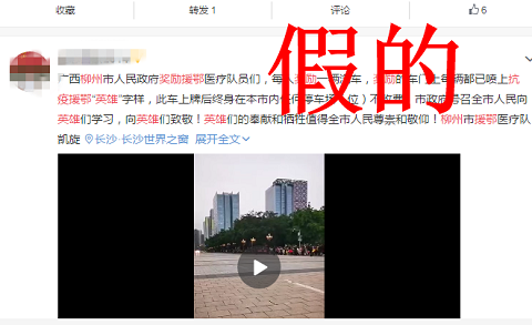 | 柳州市獎勵每名援鄂醫(yī)療隊(duì)員一輛汽車,停車終身免費(fèi)?謠言 |