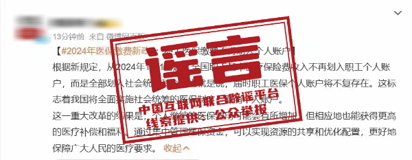 謠言:2024年職工醫(yī)保繳費(fèi)將不再劃入個(gè)人賬戶(hù)?