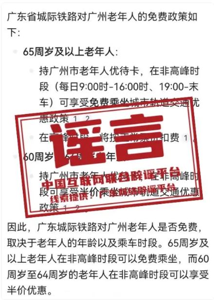 謠 言 持廣州市老年人優(yōu)待卡可免費乘坐城際列車?