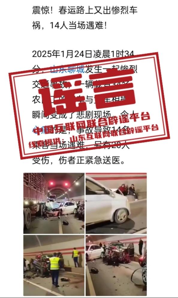 謠言:山東聊城隧道多車(chē)相撞?