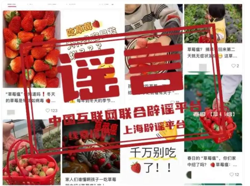 真相:近日,部分社交平臺出現(xiàn)大量有關(guān)“草莓瘟”的“善意提醒”,稱“孩子吃了草莓就會發(fā)燒咳嗽、上吐下瀉”“草莓上農(nóng)藥殘留量大”“草莓帶有諾如病毒”“大棚里種出來的草莓是反季水果”,建議大家近期不要食用草莓。經(jīng)核查,這些說法都違背了農(nóng)業(yè)常識,可能嚴(yán)重誤導(dǎo)公眾。
