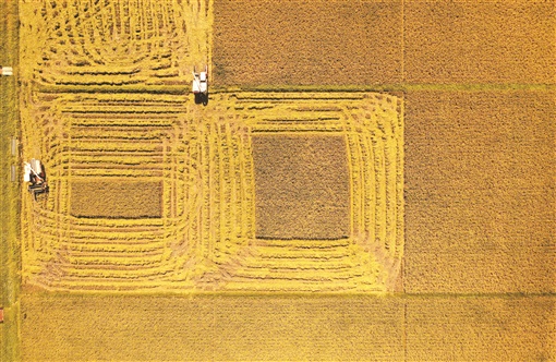 5月9日上午,湖南雜交水稻研究中心海南省三亞市海棠灣基地,收割機(jī)對(duì)水稻試驗(yàn)示范田進(jìn)行收割。湖南日?qǐng)?bào)·新湖南客戶端首席記者 郭立亮 攝