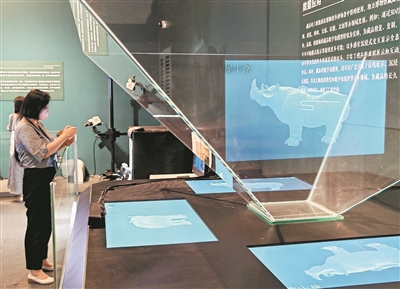 在“數(shù)說犀尊”展覽上,展廳綜合運(yùn)用了高清三維掃描、超高清顯示、人工智能、紅外感應(yīng)、增強(qiáng)現(xiàn)實(shí)等科技手段展示文物研究成果??萍既?qǐng)?bào)記者 洪星攝