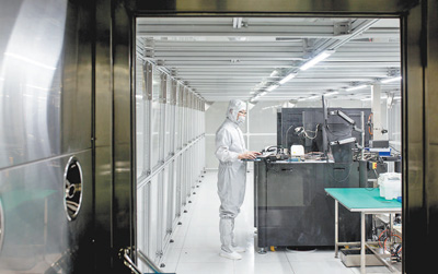 穿上防塵服,再經(jīng)過(guò)兩次噴淋除塵,記者才能進(jìn)入創(chuàng)新中心的芯片封裝測(cè)試驗(yàn)證平臺(tái)。