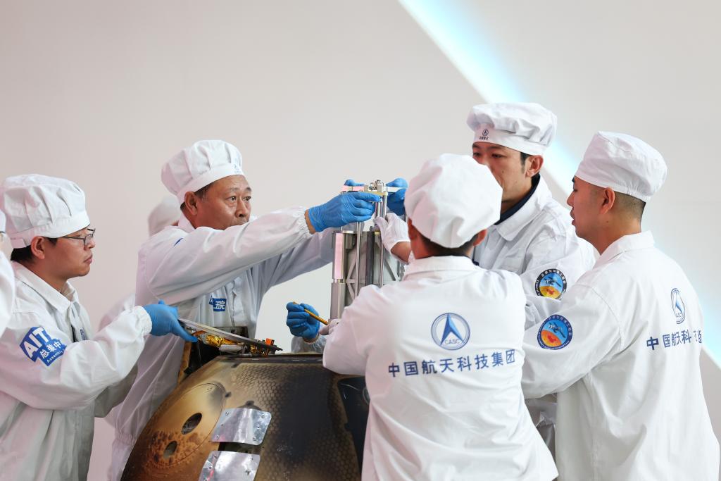 6月26日下午,科研人員對嫦娥六號返回器進行開艙,檢驗關(guān)鍵技術(shù)指標完成情況。新華社記者 金立旺 攝