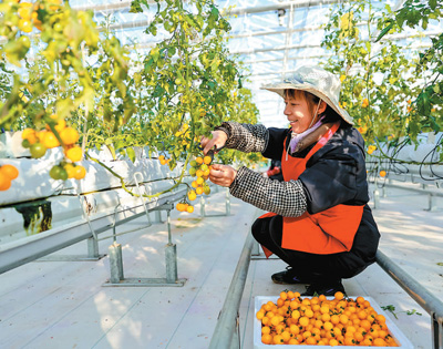 2024年12月19日,江西省瑞昌市高標(biāo)準(zhǔn)設(shè)施蔬菜示范中心,工人正在采摘西紅柿。魏東升攝(人民視覺)