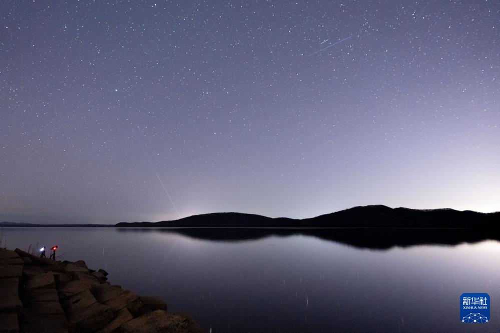 4月22日在哈爾濱市西泉眼水庫拍攝的天琴座流星雨。
