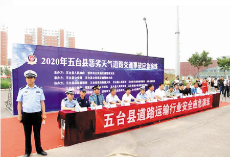 本報訊 (記者張劍雄)7月27日,市生態(tài)環(huán)境局五臺分局、忻州市公安局交通警察支隊、五臺縣公安局、五臺縣應(yīng)急管理局、五臺縣消防救援大隊、五臺縣人民醫(yī)院、五臺縣交通運輸局、高速交警二支隊七大隊等十多家單位在五臺縣瀛湖大道進行了一次惡劣天氣道路交通事故應(yīng)急演練。