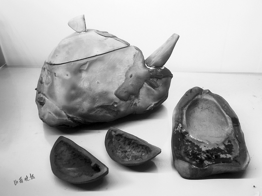 日前,在陽(yáng)泉市古生物化石保護(hù)協(xié)會(huì)的會(huì)員線下交流活動(dòng)中,71歲的奇石愛(ài)好者任富材將家中收藏的大量觀賞石標(biāo)本展示出來(lái)。他收藏陽(yáng)泉觀賞石及化石已有50余年,他的收藏包含各種地質(zhì)巖石標(biāo)本:靈璧石、木魚(yú)石、煤核石、木化石、海螺化石、方解石、瑪瑙石、鈣質(zhì)結(jié)核等,琳瑯滿目。在這些藏品中,一種褐鐵礦結(jié)核——木魚(yú)石,頗為引人注目,這些石頭被任富材制作成了硯臺(tái)、茶壺、石函、擺件等精美工藝品。任富材說(shuō),在《山西中藥典》一書(shū)中記載的禹余糧,其實(shí)就是木魚(yú)石,別名又叫“太一余糧”“石中黃子”,俗稱(chēng)“還魂石”“鳳凰蛋”,有著吉祥如意的寓意,被民間爭(zhēng)搶收藏。眾多礦石愛(ài)好者對(duì)任富材的這些木魚(yú)石藏品產(chǎn)生了濃厚的興趣,也對(duì)陽(yáng)泉本地木魚(yú)石的儲(chǔ)量、特性、成分等打起了問(wèn)號(hào)。