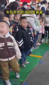 圖片來源:華商網(wǎng)視頻截圖 消防站內(nèi) 幼兒園小朋友們來參觀 一名小男孩認(rèn)出消防員爸爸后 和小朋友們驕傲地“炫耀”: 這是我爸爸!