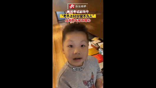 圖片來源:錢江視頻截圖 一名男孩考試前吹牛 “考不上60分誓不為人” 結(jié)果考了59分 但暖心的爸爸表示 “其實(shí)你這道題做對(duì)了,加一分, 第一次考及格,恭喜你又進(jìn)步了!” 一瞬間 男孩興奮地?fù)]動(dòng)起雙手