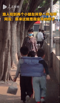 小孩子的快樂是什么? 可能是 一根棒棒糖、一趟游樂園 一件心愛的玩具、一件漂亮的衣服 也可能是 …… 陽(yáng)光下 兩名小男孩共穿一件馬甲 左搖右晃也要一起繼續(xù)走下去