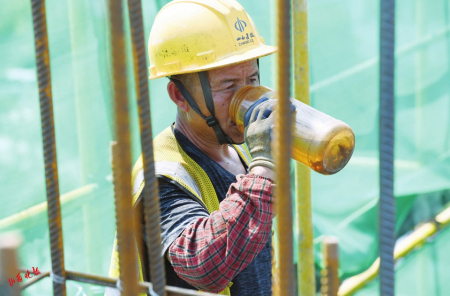 連日來,我省多地持續(xù)高溫。可有這樣一群人,他們不畏酷暑,默默堅(jiān)守在自己的崗位上。7月11日,山西晚報(bào)記者來到太原市杏花嶺區(qū)文化活動(dòng)中心項(xiàng)目施工現(xiàn)場(chǎng),將鏡頭對(duì)準(zhǔn)了高溫下的建設(shè)者。 當(dāng)日,是入伏第一天,意味著開始進(jìn)入一年中最熱的時(shí)候。在熱火朝天的施工現(xiàn)場(chǎng),工人師傅們埋頭苦干,他們雖然戴著自制遮陽帽、冰袖,身旁放著水壺,但一小會(huì)兒工夫就會(huì)汗流浹背?!斑@樣的杯子,我每天要喝好幾杯水?!碧鞖馓珶?,來自四川樂山的林英把杯子里的水一飲而盡。黝黑的皮膚、如雨的汗水、潮濕的后背……當(dāng)大多數(shù)人避暑納涼時(shí),不少勞動(dòng)者卻辛勤地?fù)]灑著汗水,堅(jiān)守在施工一線。在這個(gè)工地上,有很多和林英一樣的打工人,他們來自全國(guó)各地,用青春和汗水建設(shè)美麗山西。 為了預(yù)防工人師傅們中暑,太原市杏花嶺區(qū)文化活動(dòng)中心項(xiàng)目施工方準(zhǔn)備了清涼油、藿香正氣水、綠豆湯,還專門熬制了防暑中藥。 在兩個(gè)多小時(shí)的采訪中,山西晚報(bào)記者汗流浹背,戴著安全帽的頭發(fā)早已全部濕透,深深體會(huì)到了高溫下戶外勞動(dòng)者的辛苦,以及他們身上散發(fā)出來的勞動(dòng)之美。在此,感謝他們?yōu)槌鞘薪ㄔO(shè)的付出,向他們致以崇高的敬意。 山西晚報(bào)記者 武六紅攝影報(bào)道 1.手扶帽檐,仰看天空。 2.炎炎夏日,大量喝水補(bǔ)充體能。 3.安全帽+遮陽帽,干活、防曬兩不誤。 4.頭頂烈日,高空作業(yè)。 5.擦一把汗,工作繼續(xù)。 (責(zé)任編輯:梁艷) |
