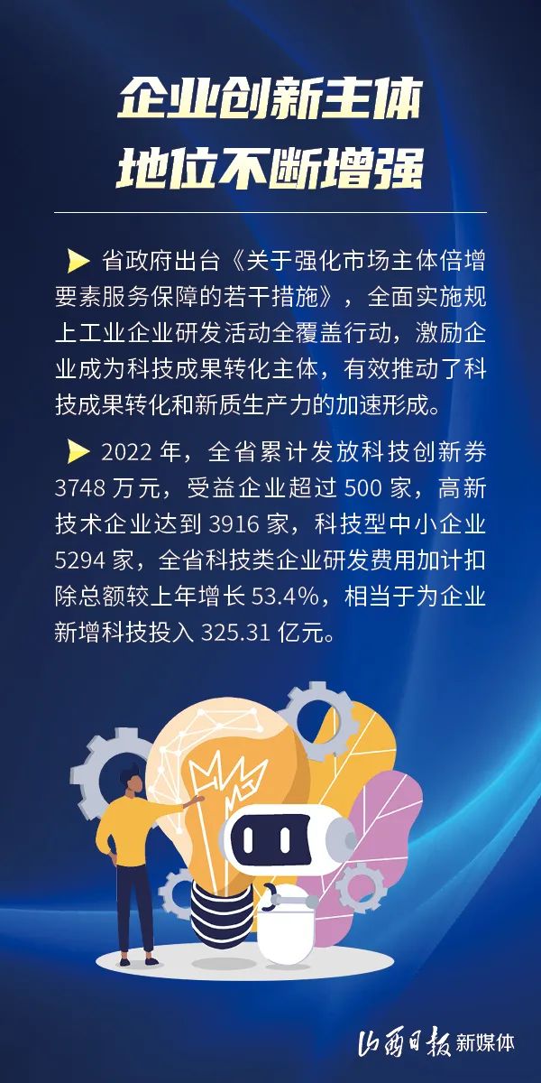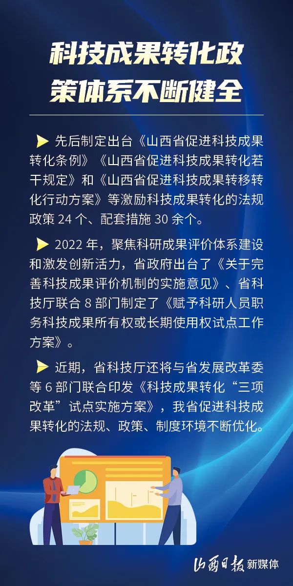 制定出臺激勵科技成果轉(zhuǎn)化法規(guī)政策24個、技術(shù)合同交易總額實現(xiàn)五年翻番、科技成果轉(zhuǎn)化引導專項五年累計投入2.21億元……近年來,我省科技成果轉(zhuǎn)化堅持新發(fā)展理念,加速科技成果在晉落地轉(zhuǎn)化和產(chǎn)業(yè)化,取得顯著成效。