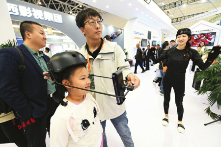 1.在第六屆山西文化產(chǎn)業(yè)博覽交易會(huì)現(xiàn)場(chǎng),觀展者在體驗(yàn)虛擬數(shù)字人。