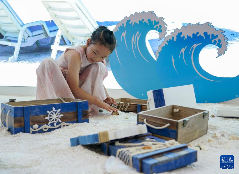 7月26日,在第八屆南博會(huì)南亞館,一名小朋友在馬爾代夫展區(qū)玩耍。