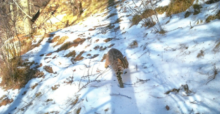 貓科豹屬動物,“山西四大旗艦物種”之一。2022年首次在五臺山被紅外相機(jī)記錄,如今已連續(xù)三年在門限石林場、南梁溝等區(qū)域活動,其存在標(biāo)志著當(dāng)?shù)厣鷳B(tài)系統(tǒng)結(jié)構(gòu)完整、功能健康。