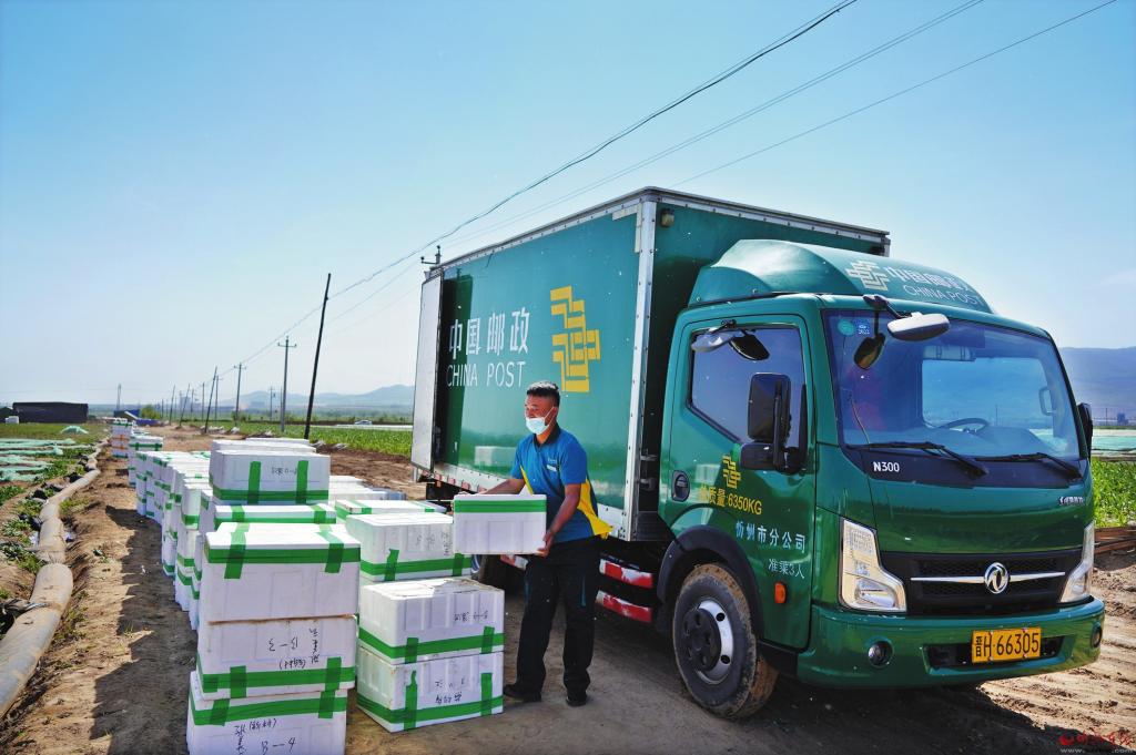 6月18日,天貓網(wǎng)購(gòu)節(jié),五寨縣郵政公司將郵政運(yùn)輸車(chē)輛直接開(kāi)到該縣蔬菜生產(chǎn)基地,將新鮮的蔬菜及時(shí)發(fā)往全國(guó)各地。 張向榮攝