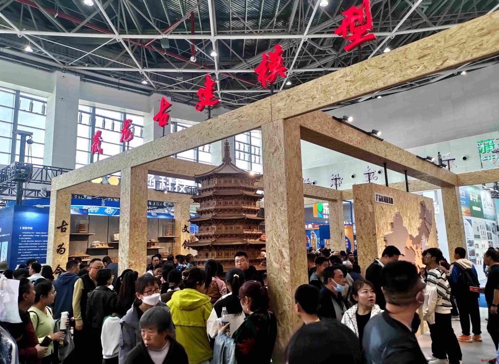走進第六屆山西文博會忻州晟龍木雕展區(qū),一座高約3米、氣勢宏偉的應縣木塔模型吸引了眾多觀展游客的目光,待大家慢慢走近,就會發(fā)現(xiàn)木塔模型里都是復刻原型的榫卯結構。該模型以朔州應縣木塔為母本,通過20∶1的比例微縮打造,更難得的是塔內(nèi)也實現(xiàn)了完全還原,樓梯扶手清晰可見,門窗都能打開。所有路過的參觀者無不嘆為觀止,紛紛駐足拍照留念。