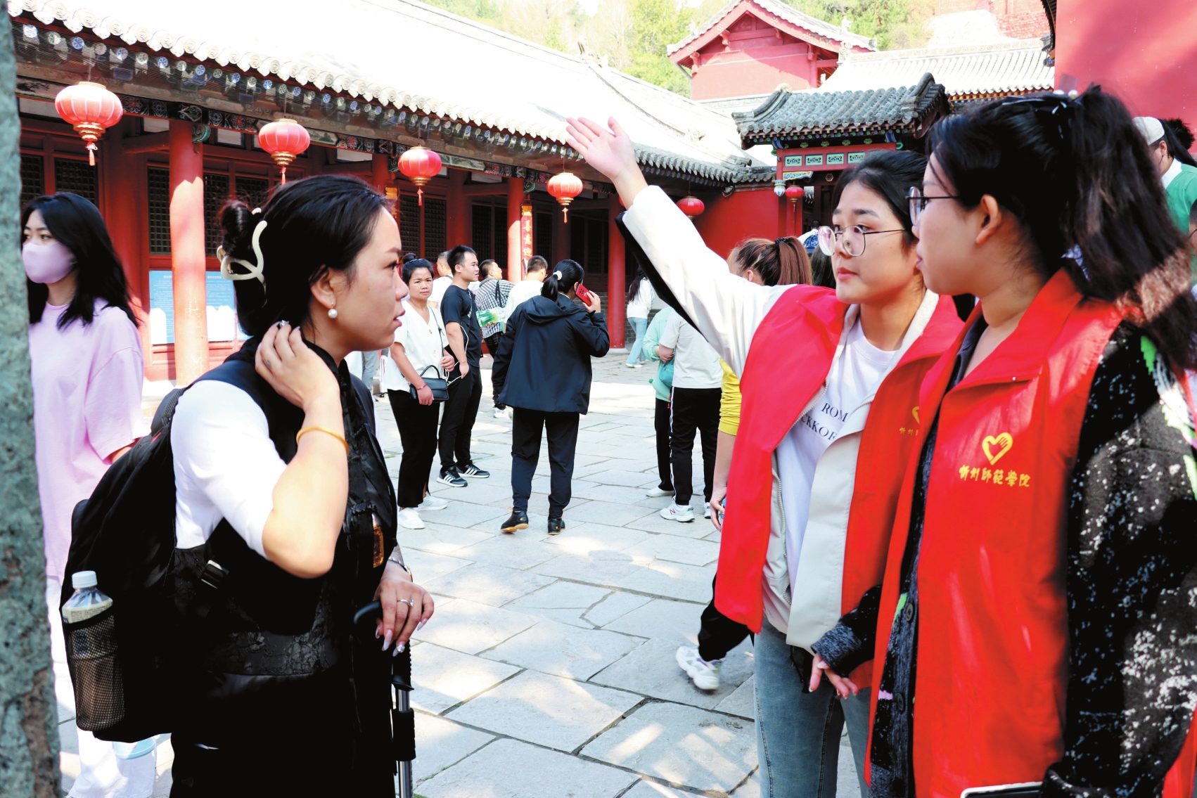 五臺山風景名勝區(qū)志愿者積極開展文明實踐活動,為游客提供全方位服務(wù)。本報通訊員攝