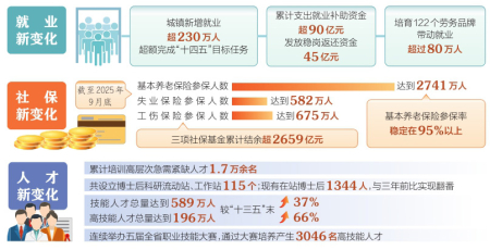 “十四五”時(shí)期,我省始終將穩(wěn)就業(yè)擺在突出位置,千方百計(jì)促進(jìn)高質(zhì)量充分就業(yè)。把經(jīng)濟(jì)發(fā)展與擴(kuò)大就業(yè)緊密結(jié)合起來(lái),不斷優(yōu)化政策,為企業(yè)減負(fù)穩(wěn)崗,累計(jì)支出就業(yè)補(bǔ)助資金超90億元,發(fā)放穩(wěn)崗返還資金45億元。對(duì)于重點(diǎn)群體精準(zhǔn)施策、分類幫扶,開(kāi)展高校畢業(yè)生等青年群體就業(yè)服務(wù)攻堅(jiān)行動(dòng),提供針對(duì)性就業(yè)創(chuàng)業(yè)服務(wù)。五年來(lái),全省城鎮(zhèn)新增就業(yè)超230萬(wàn)人,超額完成“十四五”目標(biāo)任務(wù),城鎮(zhèn)調(diào)查失業(yè)率控制在目標(biāo)以內(nèi)。