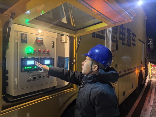 夜色徹底吞沒山巒,氣溫驟降至零下,遠(yuǎn)處山影只剩模糊輪廓。保電隊(duì)員們裹緊工裝,在寒風(fēng)里反復(fù)校驗(yàn)接線端子。23時(shí)40分,隨著合閘指令下達(dá),第一輛中壓發(fā)電車正式啟動(dòng),低沉的轟鳴在山谷間回蕩,穩(wěn)定電流順利注入線路。來不及片刻休整,隊(duì)員們又馬不停蹄地奔赴下一個(gè)點(diǎn)位。