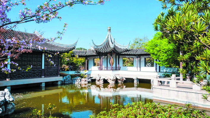 我最愛的是那亭子下圍坐在一起的蘇州人,他們打著小牌,喝著春茶,欣賞著園林雨趣,自得其樂。這片園子是屬于他們的,每天浸在園子里,享受著春茶的芬醇,體味著園林的雅致,性格中似乎也加入了幾許清雅。如果有人即興哼唱幾句評(píng)彈,或是昆曲,就更和這園子有了相同的味道。