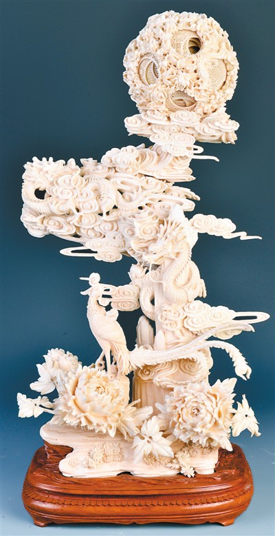 43層“龍鳳呈祥”象牙球 在廣州地鐵一號線上,有一站叫“陳家祠”。從地鐵站出來走不遠(yuǎn),便可看到一座屋脊上布滿精美雕刻的傳統(tǒng)建筑。陳家祠落成于清光緒十九年(1893年),是廣東各地陳氏宗族合資捐建的合族祠,又稱“陳氏書院”。陳家祠集廣東民間建筑裝飾藝術(shù)之大成,被譽為“嶺南建筑藝術(shù)明珠”,郭沫若曾賦詩贊其“天工人可代,人工天不如”。 這座久負(fù)盛名的百年古建筑,現(xiàn)為廣東民間工藝博物館所在地。博物館收藏各類珍貴文物與現(xiàn)代工藝精品2萬多件(套),設(shè)有11個展廳,向觀眾展示嶺南傳統(tǒng)建筑藝術(shù)和豐富多彩的民間工藝。 建筑藝術(shù)中西合璧 陳家祠是廣東現(xiàn)存規(guī)模最大、保存完好的傳統(tǒng)嶺南祠堂式建筑,總面積1.5萬平方米,主體建筑面積6400平方米,由19座單體建筑組成,呈三路三進、兩廡九廳堂式布局。整個建筑群長廊相連,庭院穿插,廳堂軒昂,園林秀美,處處細(xì)節(jié)體現(xiàn)出匠心。 來到“陳氏書院”正門,兩扇高大的黑漆木門上,繪制著兩個4米高的門神,這是廣東地區(qū)現(xiàn)存最大的彩繪門神,格外威嚴(yán)氣派。 跨過門檻,迎面隔擋外部視線的屏門上雕刻著精美的圖案。湊近細(xì)看,每一幅圖案都生動有趣,蘊涵寓意。大芭蕉象征家大業(yè)大,芭蕉樹下一只母雞帶著7只小雞覓食,象征兒孫昌盛。蒼勁的老竹盤繞成“?!弊郑纬伞白8D”(諧音“竹福”),下方還有兩棵小竹筍,象征后代如雨后春筍般蓬勃發(fā)展?!瓣惣异舻慕ㄖb飾中大量采用吉祥圖案、神話傳說和歷史故事題材,表達祈求興旺吉祥的美好愿望,洋溢著濃郁的民間文化氣息?!睆V東民間工藝博物館高級講解員曾翔說。 廣州是海上絲綢之路起點,自古以來是對外貿(mào)易重鎮(zhèn)。頻繁的貿(mào)易交往孕育了廣東開放包容的氣質(zhì),也影響了建筑藝術(shù)發(fā)展。陳家祠有不少建筑裝飾反映出當(dāng)時中西文化的交流。 在首進東廳北面墀頭上,刻著一處別致的磚雕——兩個扎著發(fā)髻、穿著肚兜的小天使左右對望?!八鼘⑽鞣叫√焓古c中國年畫中的‘福娃’造型融為一體,頗具創(chuàng)意?!痹枵f。連廊和月臺運用了西方園林常見的鐵鑄工藝,配以中式傳統(tǒng)雕花圖案,中西合璧,相映成趣。 “三雕兩塑”(石雕、木雕、磚雕、陶塑、灰塑)是嶺南傳統(tǒng)建筑常用構(gòu)件。陳家祠建筑屋頂上裝飾著層疊錯落、精致繁復(fù)的陶塑和灰塑,堪稱一大亮點。曾翔介紹,最頂層的陶塑瓦脊就是著名的“石灣陶”,在廣東佛山石灣鎮(zhèn)燒制而成,內(nèi)容一般以粵劇故事、花卉和吉祥圖案為主。瓦脊下方的基座是灰塑?;宜艿闹谱鞴に嚤容^特別,用石灰摻入糖膠、稻草、糯米等混合發(fā)酵后,往房頂?shù)你~鐵骨架上填抹塑形,再涂上顏色?;宜軟]有經(jīng)過高溫?zé)?,容易受風(fēng)雨侵蝕而剝落掉色,每隔五六年就要進行保養(yǎng)修復(fù)。 為了讓觀眾近距離感受嶺南傳統(tǒng)建筑的魅力,廣東民間工藝博物館常設(shè)“嶺南傳統(tǒng)建筑裝飾”展。展廳中有來自潮陽梅祖家祠的石雕,在一整塊堅硬的青石上雕出三段圖案組成的花籃,其中最纖細(xì)的“拉豬繩”寬度僅3-4毫米,令人嘆為觀止。 民間工藝爭奇斗巧 走進陳家祠中進主廳聚賢堂,寬敞的廳堂里還原了當(dāng)年陳氏宗族聚會議事時的擺設(shè)。聚賢堂兩側(cè)展柜陳列了多件館藏珍品,其中兩座木雕神亭格外抓人眼球。神亭是民間舉辦迎神賽會活動時安放神像或牌位的器具。“這兩件都是國家級珍貴文物?!痹杞榻B,深色的刻龍紋大神亭由清代廣州地區(qū)的木雕藝人打造,它看上去低調(diào),實際上做工非常考究,用材十分豐富。神亭選用烏木、影木、酸枝等名貴木材,臺階外用云石、內(nèi)用漢白玉,屋頂瓦片是螺鈿,屏門、柁墩是象牙,側(cè)面還裝上了從西洋進口的套色玻璃。 另一件金漆木雕大神亭是民國時期作品,采用潮汕地區(qū)特有的金漆木雕工藝:先把木頭雕刻好,在木雕上刷大漆,再利用漆的黏性貼上金箔。神亭上精雕細(xì)刻各種人物、動物、花卉等圖案,金光熠熠,華麗動人。神亭中部樓閣牌匾上刻有“海國慈航”,據(jù)推測應(yīng)為媽祖誕時游神所用。 在常設(shè)陳列“嶺南民間百藝”展廳,可以看到更多巧奪天工的工藝品。象牙雕刻是廣州地區(qū)富有特色的一項傳統(tǒng)工藝,多層象牙球則是最能代表廣州象牙鏤雕技藝的作品。“這個象牙球有43層?!痹柚钢患赖褡髌氛f,“它是將一塊完整的象牙鏤空為層層相套的球體,每一層都可以獨立轉(zhuǎn)動,球面上還有精細(xì)雕花。”早在宋代就有制作象牙球的記載,如今,象牙球最多已做到57層。 象牙球旁邊放著象牙微雕工藝創(chuàng)始人馮公俠雕刻的屈原《九歌》。拇指大的小座屏上刻有1700余字,肉眼看是密密麻麻的黑點,置于放大鏡下,可以看見每個字筆畫清晰工整。 一把嘉慶年間的象牙鏤絲人物徽章紋折扇,體現(xiàn)了清代象牙扇制作技藝的巔峰水平。折扇共21片,通體鏤空雕刻54個古裝人物及花卉紋飾等,沒有雕刻圖案的鏤空處全用垂直象牙絲填充,牙絲細(xì)如毛發(fā),一觸即斷,在它們的映襯下,主體圖案看上去仿佛懸浮于空中?!跋笱郎鹊裙に嚻吩峭怃N西方的搶手貨,不少歐洲貴族都以擁有這些來自東方的‘高級定制’作為身份的象征?!痹枵f。 艷麗奪目的