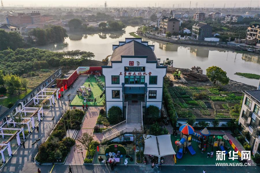11月7日,在杭州市余杭區(qū)塘棲鎮(zhèn)三星村文化禮堂前,村民在展示傳統(tǒng)技藝“翻絲綿”(無人機照片)。當(dāng)日,浙江省杭州市余杭區(qū)農(nóng)村文化禮堂“百村千場”聯(lián)盟走親在塘棲鎮(zhèn)三星村文化禮堂正式啟動?;顒蝇F(xiàn)場組織了米塑、滾燈、鰲魚燈、高蹺、掮爐子等余杭非遺技藝走親展示以及塘棲鎮(zhèn)禮堂聯(lián)盟原創(chuàng)節(jié)目展演。 從2020年3月開始,浙江省杭州市余杭區(qū)塘棲鎮(zhèn)以“小康路上我們一起曬幸?!睘橹黝},啟動美麗鄉(xiāng)村禮堂文化節(jié)活動,開展“幸福接力賽”、文化“云”講課等一系列基層文化活動。塘棲鎮(zhèn)還創(chuàng)新推進(jìn)了“禮堂聯(lián)盟”結(jié)對互促工作,與區(qū)級文化團(tuán)隊結(jié)對共建,使鄉(xiāng)村文化禮堂“活”起來,全面提升鄉(xiāng)村百姓的幸福感。新華社記者 徐昱 攝