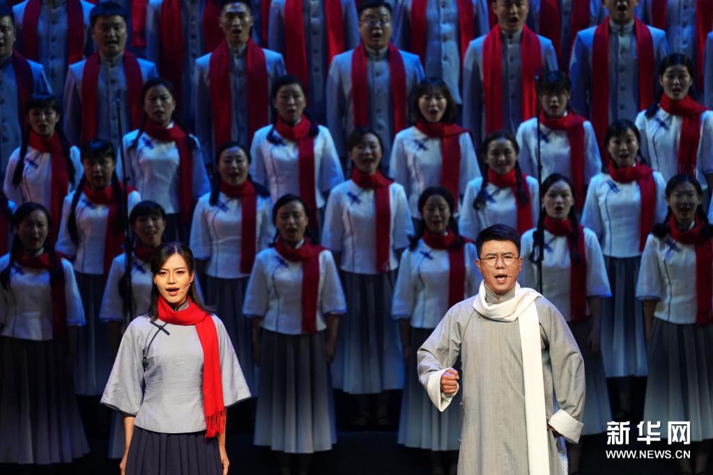 6月30日,在山西大劇院,演員在合唱《國(guó)際歌》。當(dāng)日,山西省慶祝中國(guó)共產(chǎn)黨成立100周年文藝匯演在山西省太原市山西大劇院舉行。新華社記者 詹彥 攝