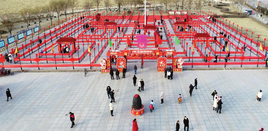 九曲黃河燈游會(huì),是河曲縣古老的民間文化活動(dòng),因其路線三回九轉(zhuǎn),所以寓意是天下黃河九十九道彎。燈游會(huì)場(chǎng)從上面鳥瞰就是一個(gè)方陣圖,陣內(nèi)有72桿旗,365盞明亮的燈籠,象征著在新的一年里天天亮亮堂堂,全年紅紅火火。河曲縣自古就有“有月無燈不算春”的說法。流傳至今、長盛不衰的大型民間活動(dòng)——九曲黃河燈游會(huì)一直以來深受百姓喜愛。它像是一場(chǎng)集體的狂歡,見證了黃河岸邊河曲人民最虔誠的新年祝福,承載著河曲人民新年風(fēng)調(diào)雨順、萬事勝意的美好祈愿,講述著黃河沉淀千年的傳奇故事。 本報(bào)通訊員