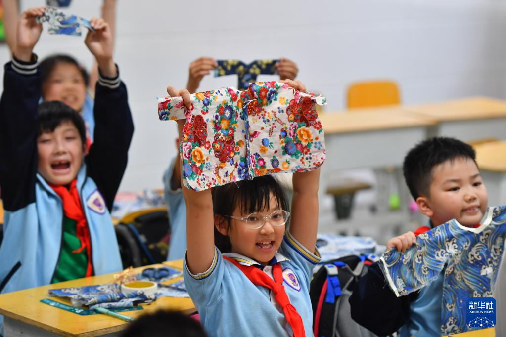 近年來,湖南省長沙市天心區(qū)紅衛(wèi)小學積極落實“雙減”政策,聯(lián)合專業(yè)機構設計了豐富的課后服務內容,包含剪紙藝術、手工風箏、傳統(tǒng)服飾設計、趣味臉譜、景泰藍掐絲琺瑯畫、拓印、皮影戲等,讓學生零距離感受非遺,激發(fā)學生對傳統(tǒng)文化的興趣,推動非遺的傳承,助力“雙減”。(新華社記者 陳澤國 攝)
