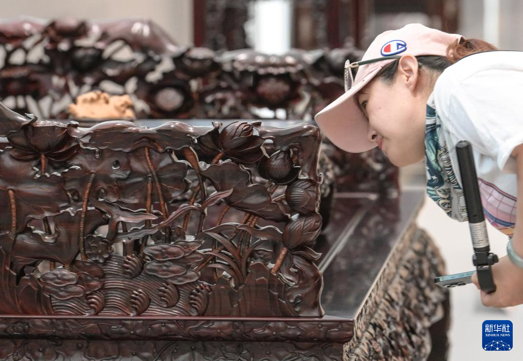 當(dāng)日,“心·傳——陳玉樹(shù)新時(shí)代古典家具藝術(shù)展”在位于北京的中國(guó)工藝美術(shù)館、中國(guó)非物質(zhì)文化遺產(chǎn)館舉辦,展出了高級(jí)工藝美術(shù)師陳玉樹(shù)近年創(chuàng)作的20套古典家具,展現(xiàn)出中國(guó)木作技藝之美。新華社記者 李賀 攝