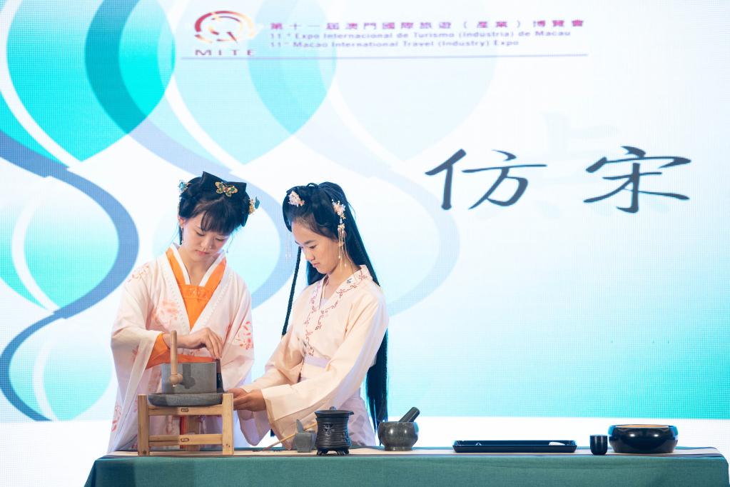 6月30日,表演者在澳門“茶和天下·雅集”暨茶文化之旅主題推廣活動上展示仿宋點(diǎn)茶。新華社記者 張金加 攝